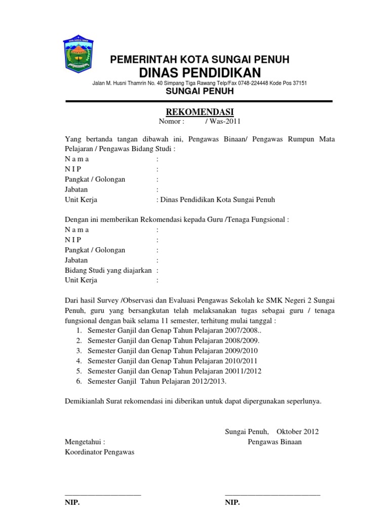 Definisi Surat Rekomendasi Daftar Usulan Nama Calon Kepala Sekolah